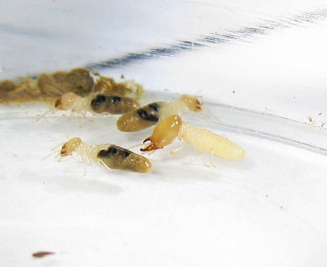 Soldier and workers of Euhamitermes. The workers constrict their abdomen when stressed.